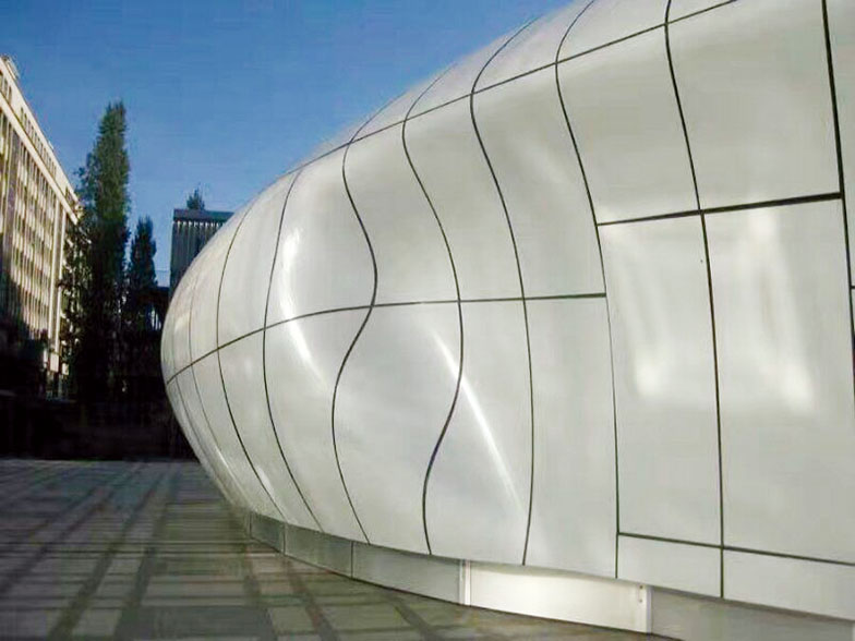双曲铝单板的加工难度较大,对机器的精度及技术工人的操作要求较高,具有很强的技术含量。我司可依据客户的需求,针对各种曲率进行设计加工,凸显工艺水平,满足建筑物装饰的个性化要求。